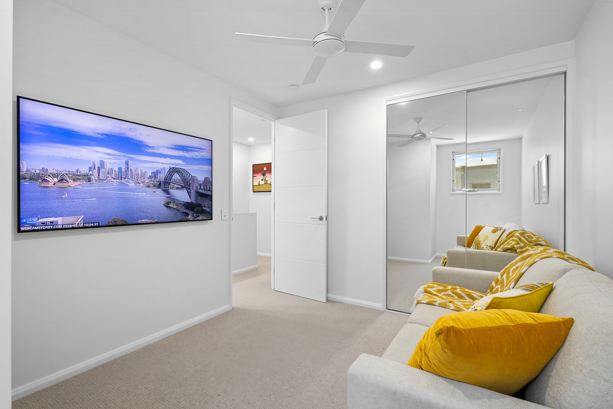 Upstairs, the third-floor bedrooms offer a touch of luxury, with plush wool carpets underfoot. The expansive master suite occupies the top floor, featuring generous storage and a well-appointed ensuite. Two additional bedrooms, each with built-in wardrobes and stylish coastal finishes, share a beautifully designed main bathroom.