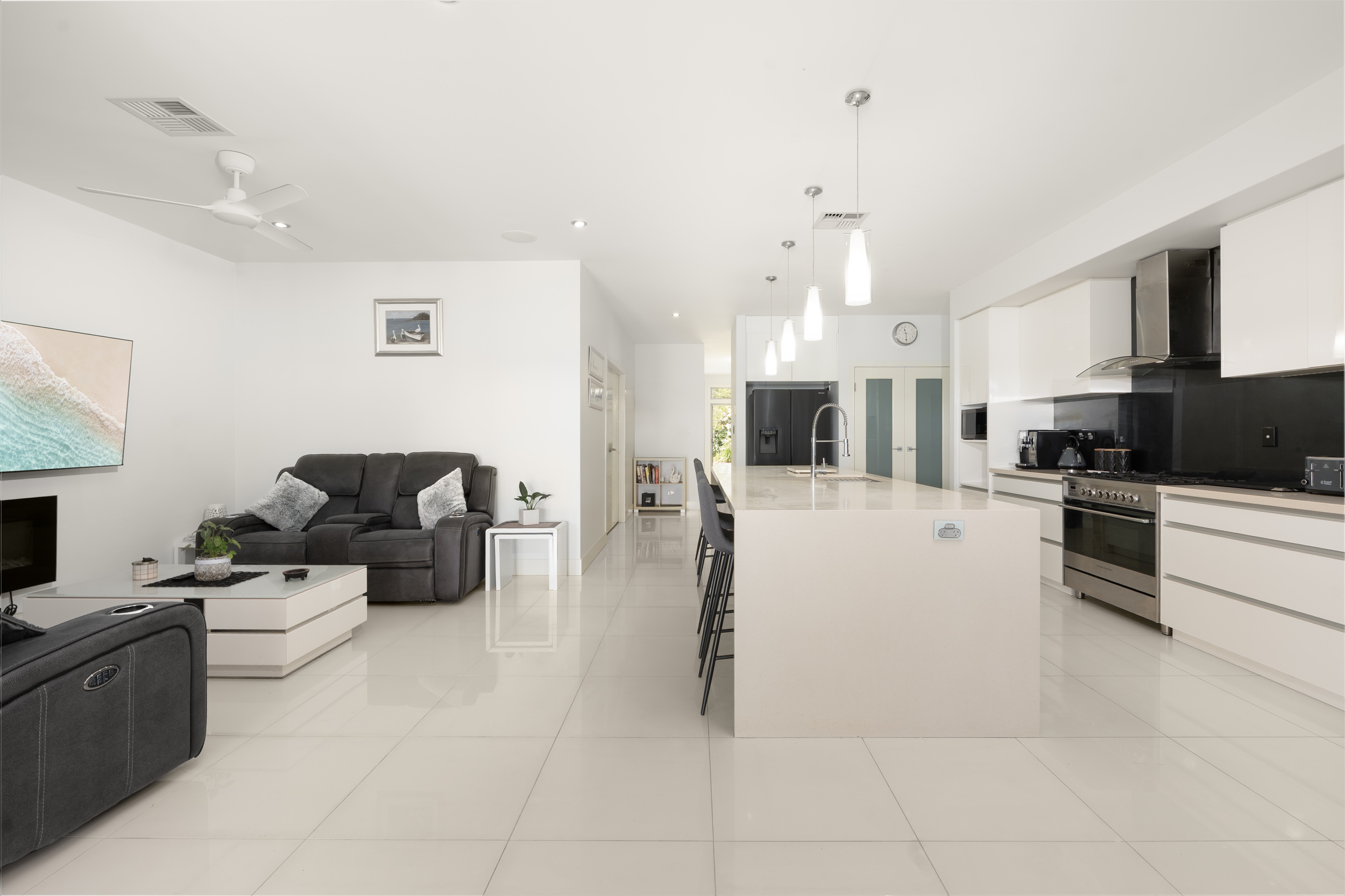 Outdoor living is a standout feature, with a substantial north-facing covered alfresco complete with an outdoor kitchen, flowing effortlessly to the heated swimming pool and private backyard. This space creates the perfect setting for year-round entertaining and relaxed coastal living.